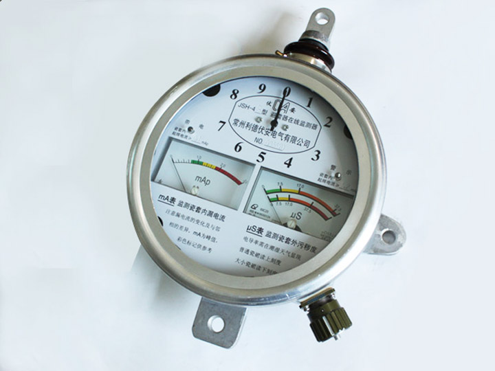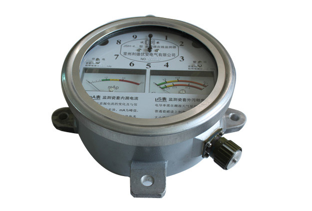 ??JSH-4型監(jiān)測器配有不銹鋼制作的屏蔽環(huán)及熱縮絕緣的引下線,瓷套外的漏電流通過監(jiān)測器瓷套的裙間金屬環(huán),導入內中右側毫安表,毫安表中刻度是用反映污層電導率uS來表示的,它考慮了我國主要避雷器生產(chǎn)廠所用瓷套的爬電距離及絕緣子形狀因素。表的上層刻度適用普通瓷裙,下層刻度適用大小防污瓷裙。