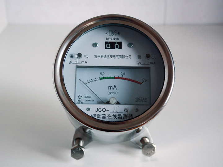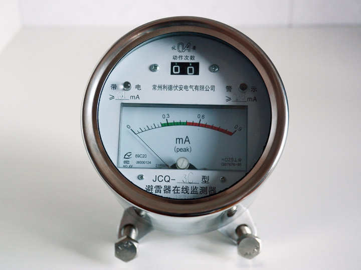 ??JSH-3型和JCQ-3型監(jiān)測器設計了指針式動作計數(shù)器和數(shù)字式動作計數(shù)器,計數(shù)器面板大,便于遠處觀察;增加了由發(fā)光管組成的漏電流警示裝置,更明顯地提示巡視人員的注意及夜間觀察。外形尺寸小,外觀美觀,安裝方便;JCQ-3型外接測量插空使處接測量儀方便地串聯(lián)于泄漏電流回路,例如通過電纜引人中心控制室,便于集中監(jiān)視,或接入阻性電流測量儀,在不停電的情況下,對避雷器實施在線監(jiān)測。